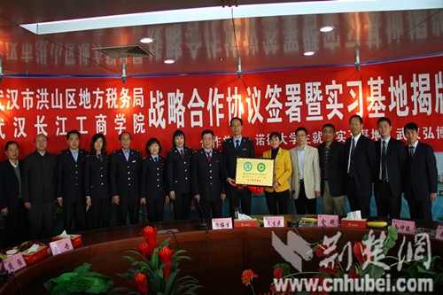 荆楚网消息(通讯员狄奥)11月2日,武汉长江工商学院与洪山区地方税务局签署战略合作协议,并进行了实习实训基地揭牌。