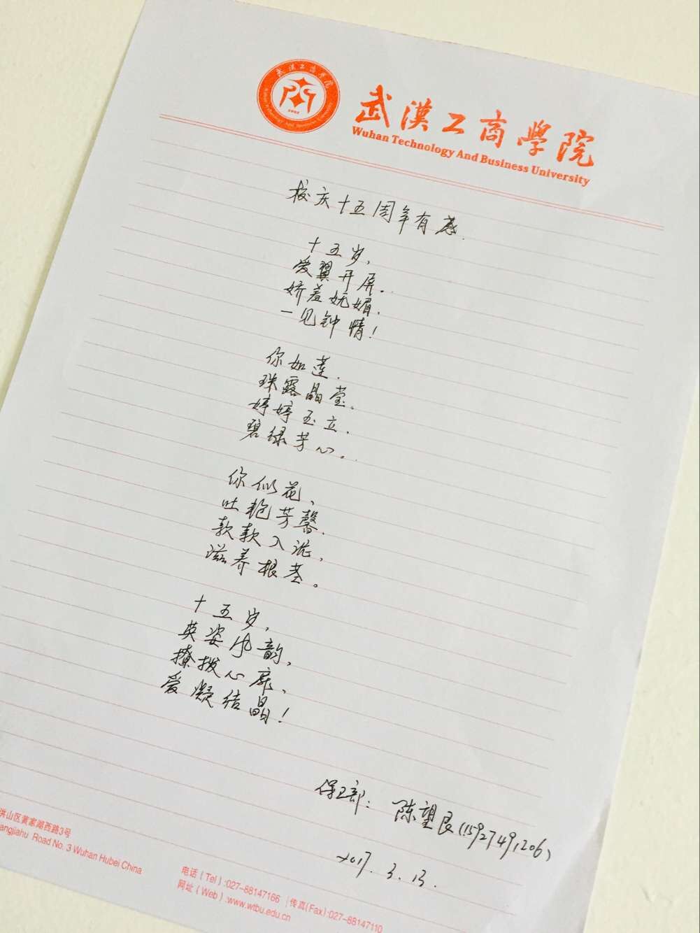 作者: “三育人”先进个人 学校保安 陈望艮