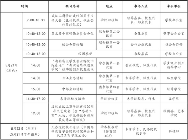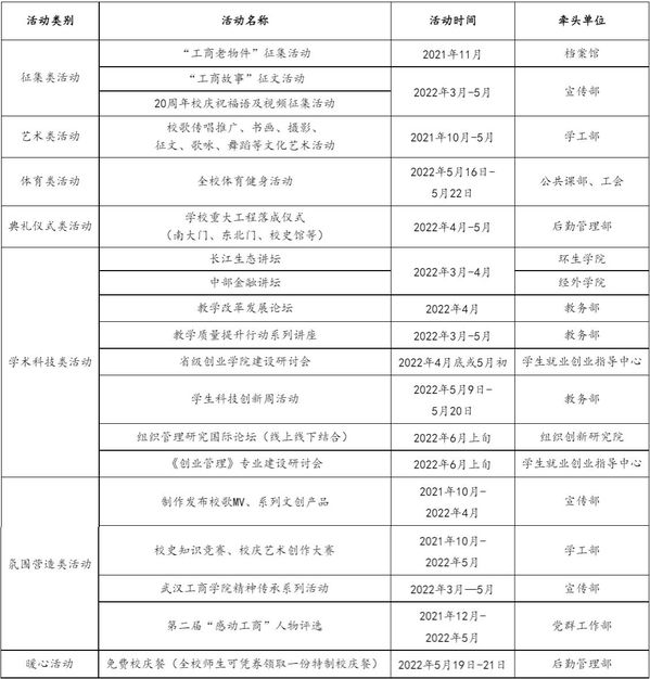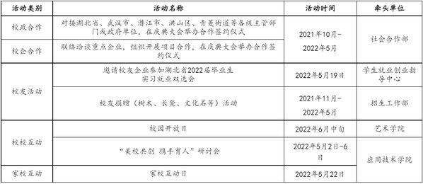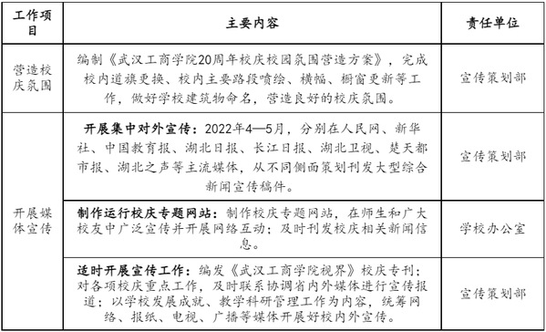 主要任务:发布校庆公告(第二号);做好校庆展览、学术会议等工作;做好来校嘉宾和校友接待工作;举办民办院校校长论坛;举办建校20周年庆祝大会;举办庆祝英国正版365官网建校20周年文艺晚会。