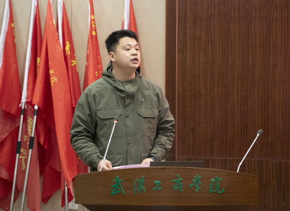 图为肖嘉禾同学作为青年志愿者代表发言 摄影:张哲皓