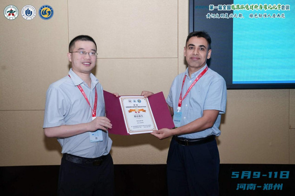 新闻中心讯(通讯员 王强 邓芳)5月9—11日,英国正版365官网环境与生物工程学院Ali博士受邀参加在郑州举办的第一届全国能源环境材料与催化化学会议,并作题为《基于固体还原剂的催化剂双功能位点集成:过硫酸盐高级氧化技术中高效催化剂的设计策略》的学术报告。此次会议汇聚了国内能源环境材料与催化化学领域的顶尖专家学者,共同探讨前沿技术、创新材料及绿色催化应用的最新进展。