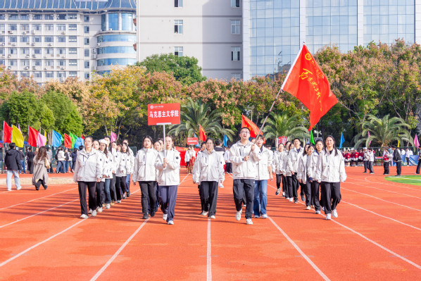伴随着铿锵有力的《运动员进行曲》,国旗队以及来自各二级学院的师生代表方队步伐整齐、气宇轩昂,依次入场接受主席台检阅。各方队结合专业特色,通过爵士舞、啦啦操、古典舞、舞蹈串烧等创意迭出、活力迸发的表演,充分展现了武工商学子昂扬向上的精神风貌与蓬勃朝气,赢得现场师生阵阵掌声。