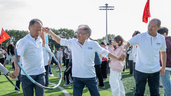 图为教职工组“一圈到底”项目比赛现场 摄影:余剑韬 贺熊邹 曹子涵