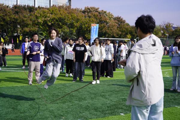 文法学院团队负责人吴琼老师在集体跳绳夺冠后开心地说:“感谢学校组织的趣味运动会,让大家在工作之余放松身心、增进情谊!我们集体跳绳项目从去年第二名到这次成功取得了第一名,是团队默契与共同努力的结果。我们在赛前便一直反复练习找节奏、相互鼓励,比赛中虽有点紧张和小失误,但快乐远比名次更珍贵,和大家一起运动的过程超棒!”
