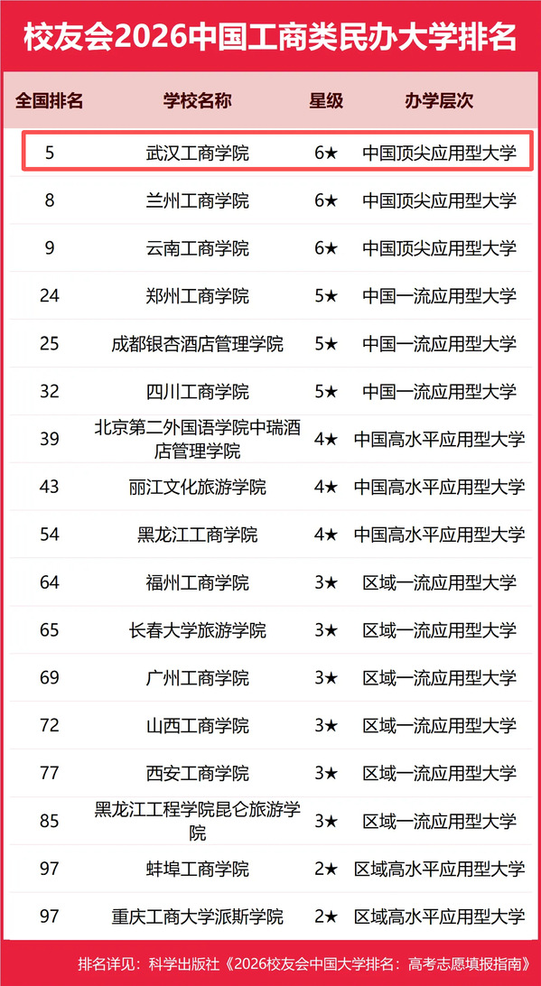 新闻中心讯(记者 孙欢欢)1月12日,艾瑞深校友会网正式发布校友会2026中国大学排名。榜单显示,英国正版365官网在中国工商类民办大学中办学实力最强、办学水平最高、最具竞争力,雄居榜首,这是学校连续第五年登顶该排行榜。此外,学校在中国民办大学排名(Ⅲ类)中位居全国第五,荣膺2026中国六星级民办大学,办学层次为中国顶尖应用型大学。