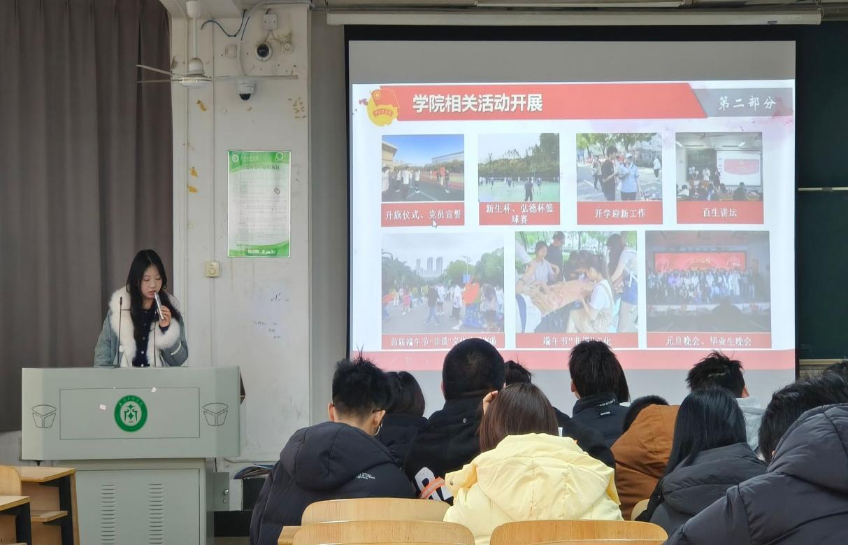 随后,电子商务学院分团委副书记刘梦雨对分团委本学期工作做出总结,以PPT的形式展现了电子商务学院分团委本学期的主要工作成果与亮点。同时还对各组织的努力给予充分肯定,并且希望未来能够继续努力。