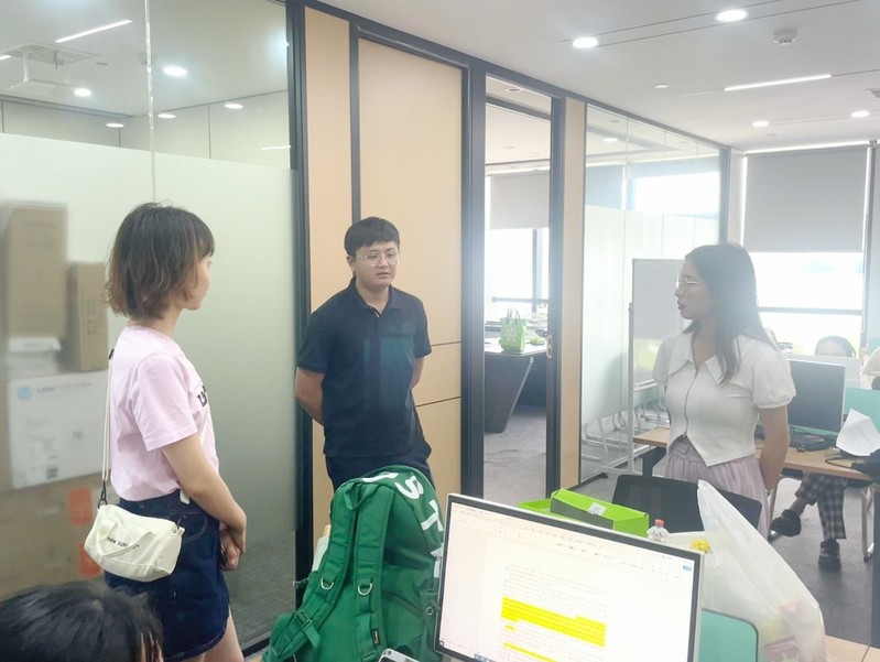 随后,冷馥辰主任与朱懿辅导员前往实习生工作岗位,与正在进行专业综合实习的学生亲切交谈,详细询问了他们的工作内容、实习进展以及生活状况。同学们热情地分享了自己在实习中的收获与感悟,纷纷表示在企业的实习让他们对专业知识有了更深刻的理解,也积累了宝贵的工作经验。同时,同学们也提出了实习过程中遇到的一些困惑和问题。
