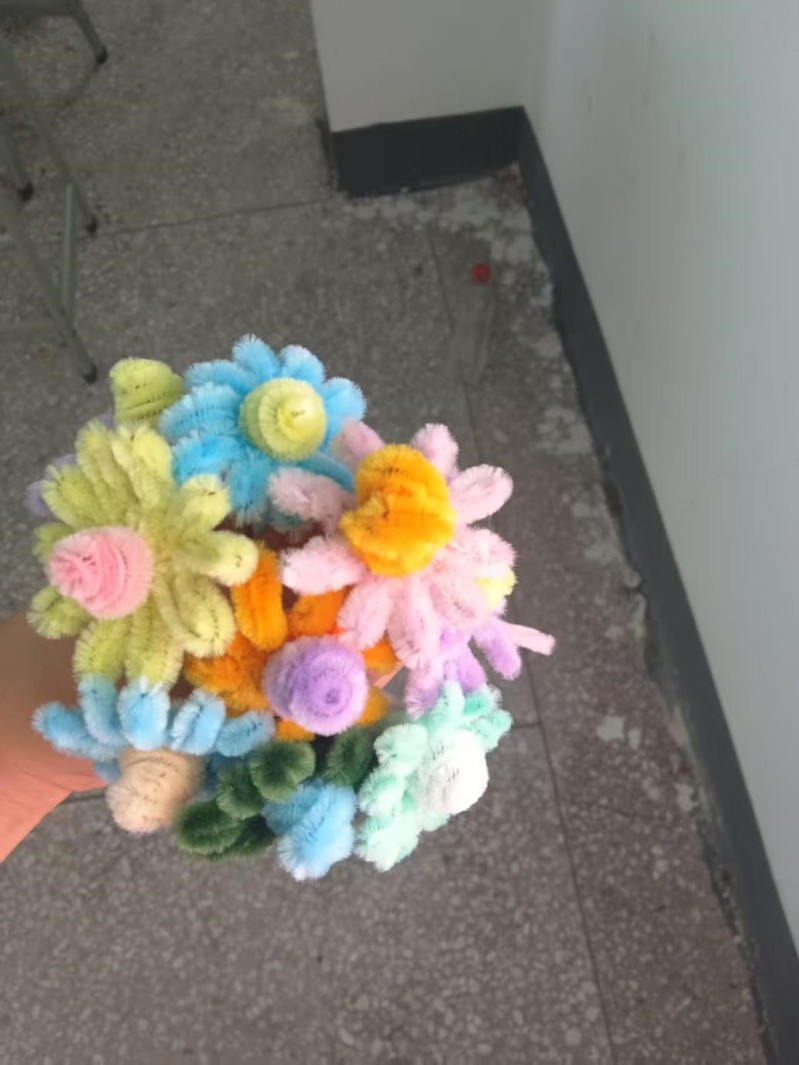 在基础教学环节,志愿者们化繁为简,让手工技巧变得易学易懂。他们提前准备了红、黄、蓝等多种颜色的扭扭棒,通过“折一折、绕一绕、拧一拧”的三步法演示,教会孩子们制作简单的花朵、小动物等造型。志愿者们还现场展示了提前做好的扭扭棒作品——有栩栩如生的蝴蝶,还有色彩鲜艳的小灯笼,激发了孩子们的创作兴趣。孩子们拿着扭扭棒跃跃欲试,在志愿者的耐心指导下,逐渐掌握了弯曲、缠绕的基本技巧。