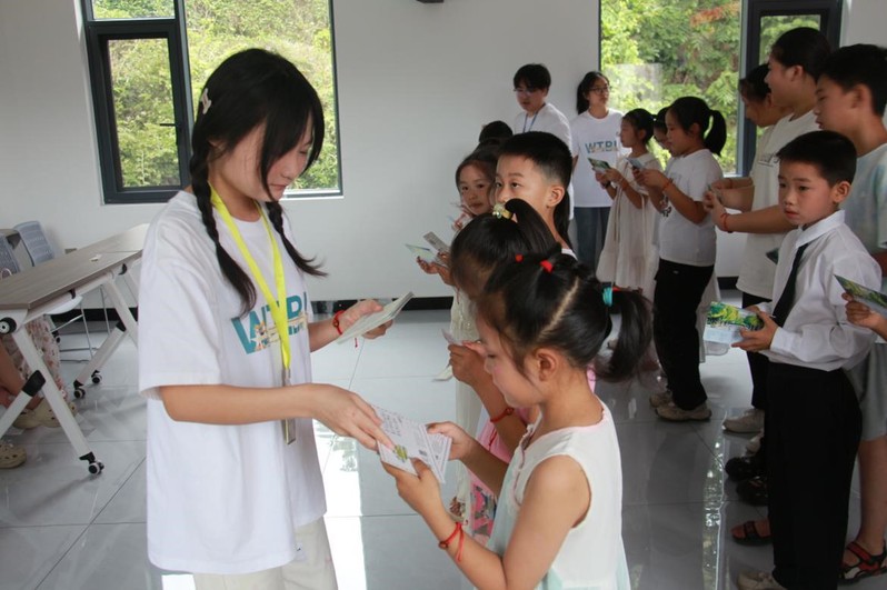 仪式最后,每位志愿者都提前为小朋友们亲笔书写了饱含祝福、鼓励与殷切期望的明信片寄语。在庄重而温馨的氛围中,志愿者们郑重地将这些承载着深情厚谊的明信片一一赠予小朋友。小朋友们神情专注地接收这份特殊的礼物,仔细阅读文字,现场洋溢着感动与惜别之情。这一纸寄语,不仅凝结了志愿者对孩子们健康成长的真诚祝福,也象征着志愿者们与谢店村儿童之间深厚情谊的延续。