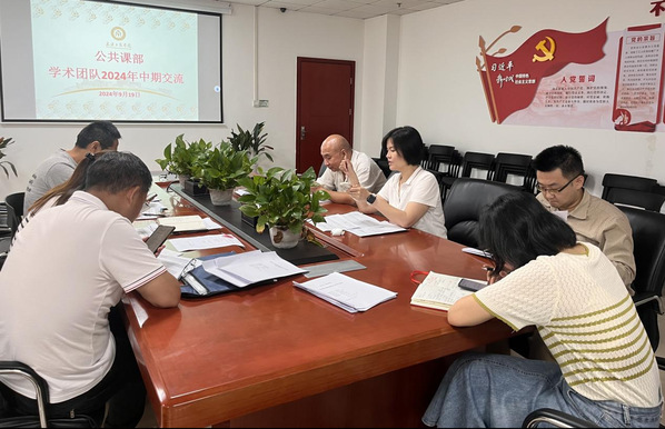 2024年9月19日下午14点半,公共课部学术团队中期交流会议在综合楼938会议室召开。参加此次会议成员是课部学术团队负责人吴珊、李晶、刘文斌、李高升、润波、黄益、李昭昭及教学秘书王怡心。