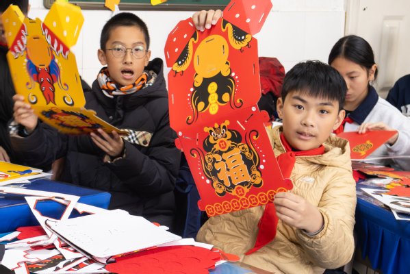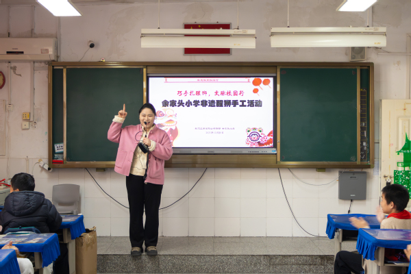 在武昌区余家头小学,李晶老师牵头,郭少颖、李俊杰老师协助筹备的活动热闹开场。锣鼓声中,两只色彩鲜亮的醒狮登场,时而欢快跳跃、时而摇头晃脑,憨态可掬的模样引得同学们拍手欢呼,我校学子用灵动表演尽显醒狮民俗的鲜活魅力。表演过后,六年级4班的手工课堂接续升温,三位老师化身“手工导师”,一边讲述醒狮传说,一边示范道具制作,同学们专注裁剪、创意粘贴,一个个小巧精致的专属醒狮道具相继诞生,在动手实践中收获文化知识与节日喜悦。