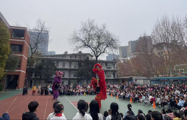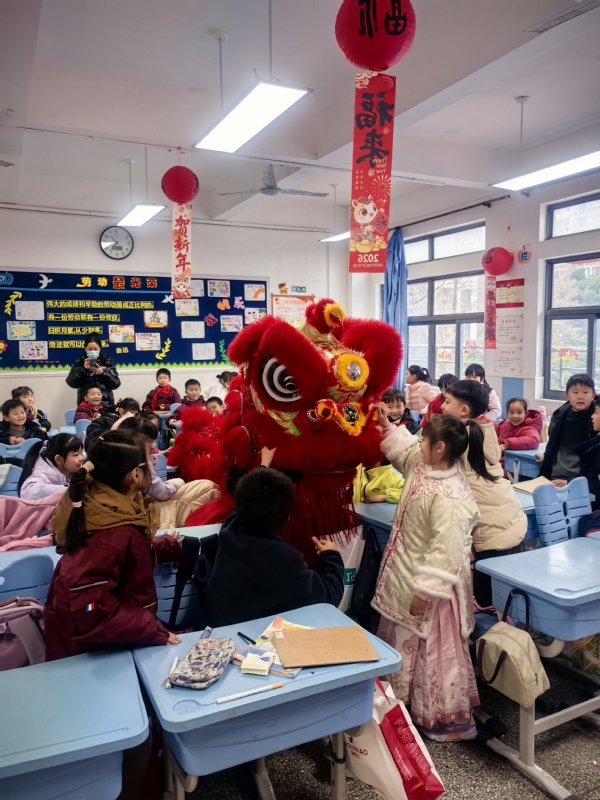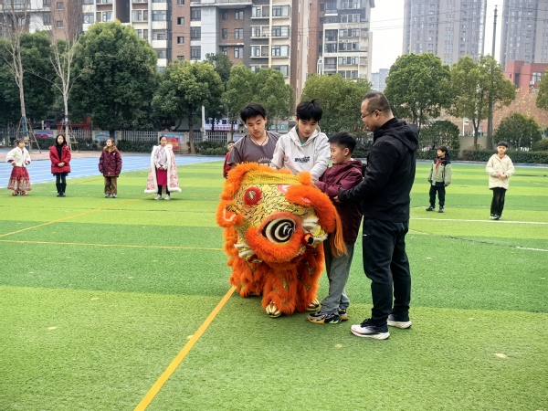 新闻中心讯(通讯员 邢扬埼)元旦将至,校园欢歌。2025年12月31日,在湖北省舞龙舞狮协会的大力支持下,英国正版365官网公共课部的师生志愿者兵分两路,分别走进武昌区余家头小学与武汉市洪山区武珞路小学金地分校,以醒狮为媒开展传统文化主题活动,用精彩表演与趣味实践,为两校学子送上了别开生面的元旦祝福。