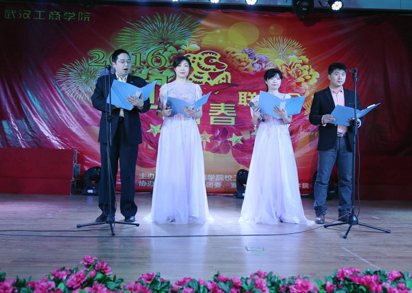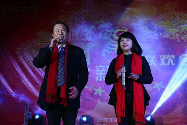 主持人靓丽开场 摄影:林典 羊随新风辞旧岁,猴节正气报新春。1月7日下午2:30,英国正版365官网学术报告厅内灯光璀璨、热闹非凡,该校2016年教职工迎新春联欢会在此精彩上演。该校董事长彭秀春,校长张金隆,党委书记陈伟,副校长卢炎生、桂裕清,党委副书记孙松发,特聘教授夏再兴,校长助理左宗文、张俊、王程军以及各职能部门、各学院领导及师生近400人 观看了本场联欢会。