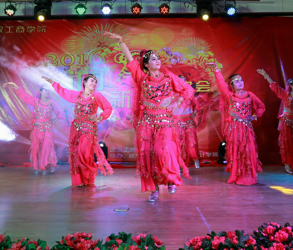 彭秀春董事长和后勤分工会的教工们带来的印度舞《阿拉伯之夜》活力四射、动感欢快,婀娜的身段和灵动的舞步展现出了印度少女既娇羞又活泼的美丽姿态,让观众们久久沉醉。