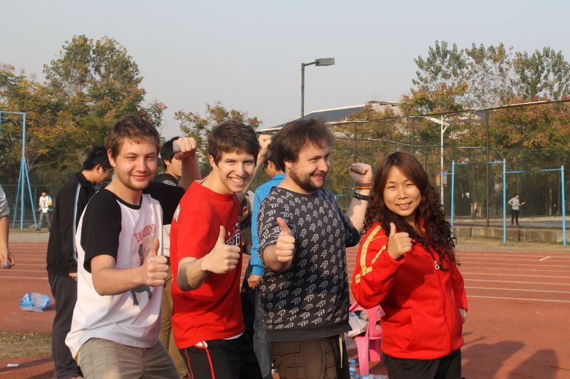 | (学通社 刘特)2012年11月12日,我校第八届运动会在大家的期待中隆重拉开帷幕,各学院老师及同学们都积极地参与各类比赛项目,其中国际教育学院的外教们也不例外,并成为运动赛场上一道独特亮丽的风景线。在此次运动赛场上,Bryan、Chris等几位老师在教工组项目中,均取得了可喜的成绩。 百米赛跑中,Bryan老师健步如飞,很快地跑到了终点;铅球比赛中,Micheal老师投出优美的弧线,铅球掷地有声;接力赛跑中,虽然Chris老师摔了一跤,但他爬起来后仍然顽强奋力奔跑,准确把接力棒传给下一位老师……伴随着围观同学振奋人心的加油声,运动赛场上洋溢着青春与活力的气息。 赛后成绩公布,外教们不只在比赛中都取得了不错的成绩,更表现出了“奥林匹克”精神。国际教育学院马老师表示,此次运动会是全校的运动会,他们鼓励外教们来参加,也希望他们在比赛中能够获得运动的快乐。 |