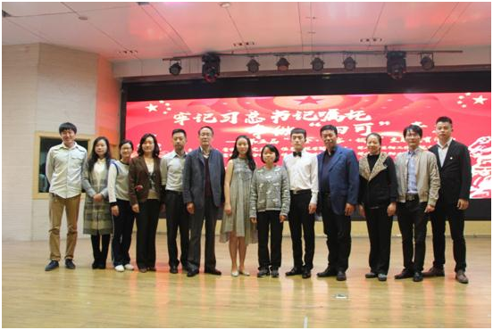 在经过1小时的谈话后,访谈节目接近尾声,党委书记陈伟老师上台讲话,对陈春林给予鼓励及对其未来生活的祝福,也号召了同学们向她学习,最后,全体领导嘉宾、工作人员和陈春林合影留念,至此,此次大讲堂活动圆满结束。
