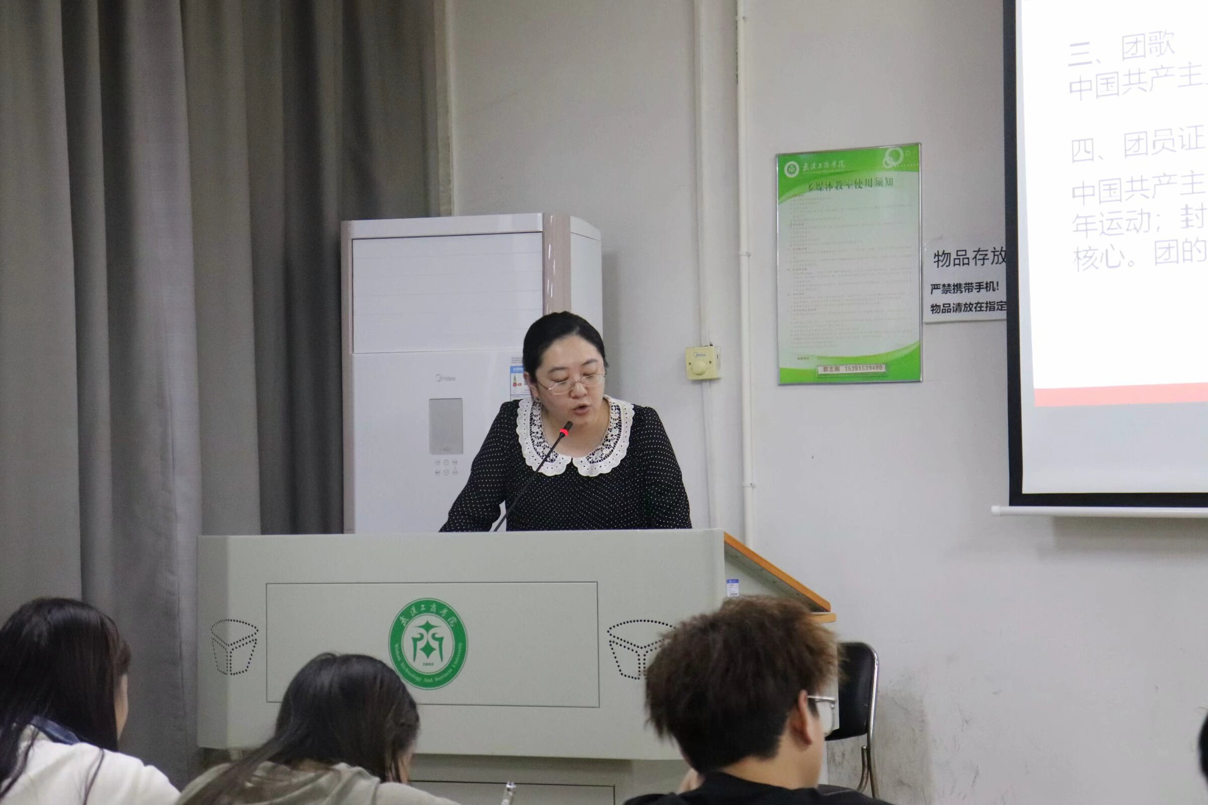 薛佳老师将本次团课分为3个小节,分别是团章概述,团章总则和今年学生如何学习和遵守团章。老师在团课开始介绍了本次堂课的学习目标是认真学习团章,严格遵守团章。