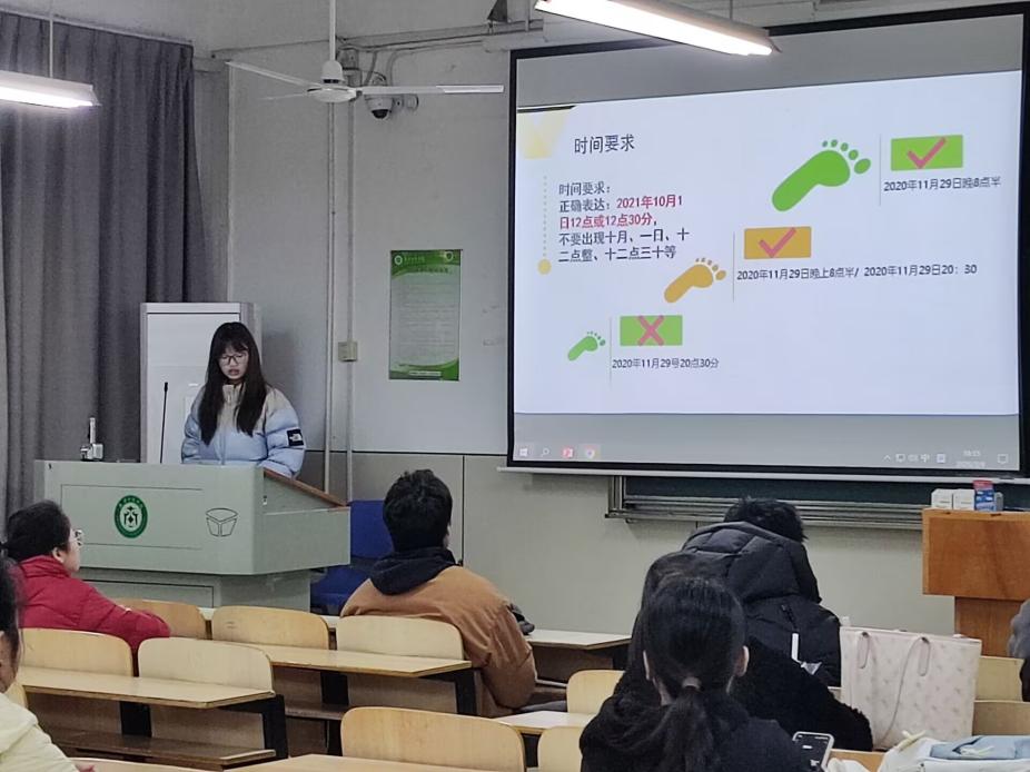 大会第一阶段,围绕新编部的基础工作展开系统讲解。唐玉莹副部长首先详细介绍了拍照记录的规范要求,并结合往期活动照片进行对比分析,帮助部员理解如何拍摄出符合要求的新闻图片。随后,姚娅茹部长重点讲解了新闻稿写作规范,从新闻六要素入手,通过优秀案例解析,详细说明了新闻稿的标题拟定、导语撰写、正文结构和语言风格等要点,特别强调要使用第三人称客观叙述,避免主观表达。此外,针对管院QQ说说的编辑工作,两位主讲人现场演示了说说排版技巧,包括话题标签使用、配图选择、发布时间等细节,确保部员能够快速掌握基础宣传工作的核心技能。