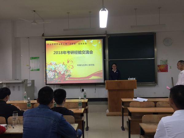 本站讯(通讯员 李文婷)4月26日下午2:00,环境与生物工程学院在综合楼312教室举行了2018届学生考研经验交流会。学院党总支书记陈玲、副院长吕凯波、辅导员章姗,14级考研学生代表刘超、陈妮、余小康以及来自各个年级的党员、预备党员、入党积极分子等人参加了此次活动,活动由杨奎同学主持。
