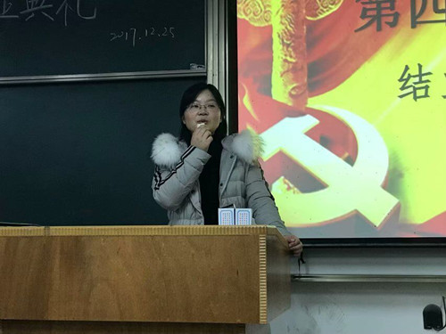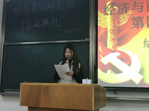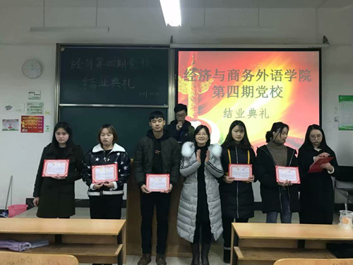 2017年12月25日晚7:30经济与商务外语学院第四期党校结业典礼在综合楼顺利召开,办公室主任黄燕老师,党校带队主讲人杨建平老师出席了本次结业典礼,典礼由经济与商务外语学院青年马克思主义研究协会承办。