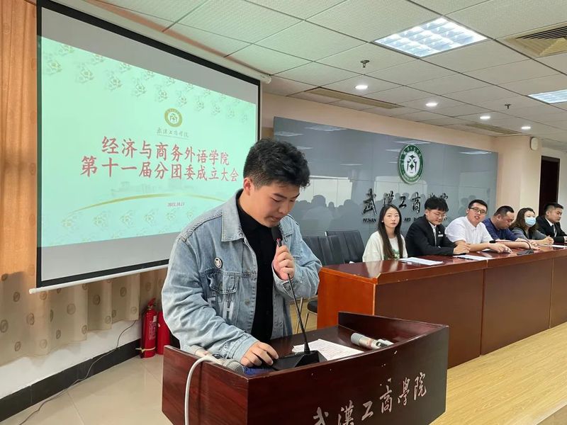 本次会议由学生会秘书处部长苏鹏主持,宣读本场会议的要求和纪律,并在介绍到场的人员后,经济与商务外语学院分团委成立大会正式开始!