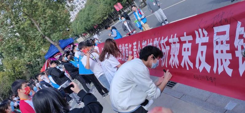 在宣誓过后,大家都陆续上前在横幅上留下了自己的名字,这也是他们成人和担起责任的证明。