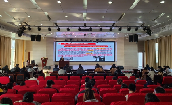 新闻中心讯(记者 汪旸 见习记者 杨小婷 赵婵)为深入学习贯彻党的十九届六中全会精神,引导师生党员深刻领会全会精神的丰富内涵和核心要义,12月2日下午2:30,学校思政课部特邀武汉工程大学马克思主义学院副教授、硕士生导师谢俊,在校学术报告厅为各学院党总支书记、学生党支部书记、思政课部教师,以及学生党员代表做了一场主题为“学习贯彻党的十九届六中全会精神”的专题讲座。