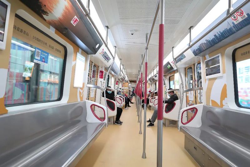 5号线是武汉市首条全自动运行地铁线路,全线列车从唤醒检查、进入正线、结束运营返回段场休眠,全过程无需人工操作。车头取消传统驾驶室,改成敞亮的观景玻璃,乘客可以直接看到隧道内景,体验全速穿梭“时空隧道”的感觉。