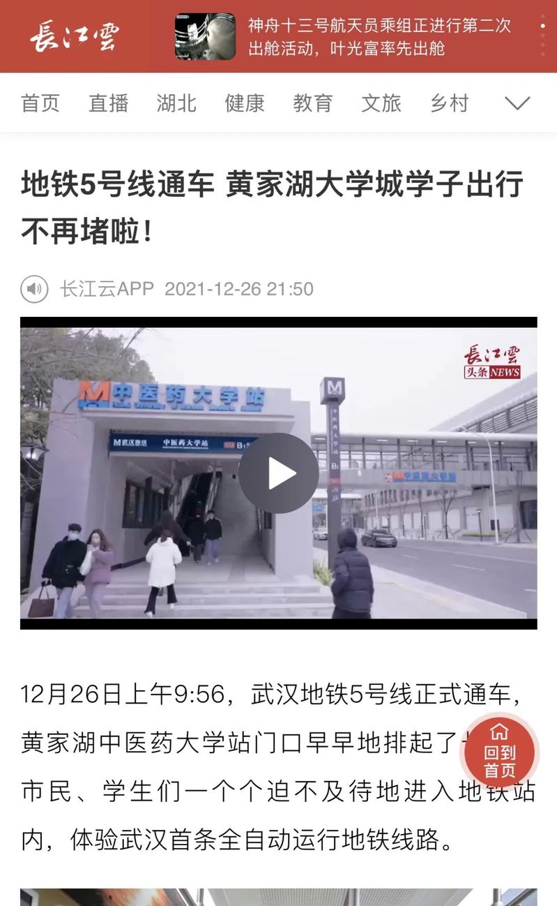 学校学子在5号线开通首日乘坐打卡,热情分享乘车体验,受到了新华网、人民网、湖北日报等中央级、省级媒体的关注和报道。
