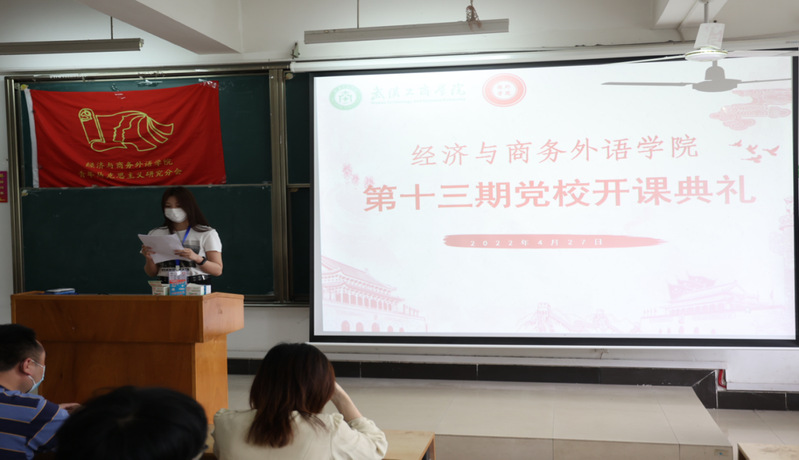 2022年4月27日中午12点,经济与商务外语学院分团委青年马克思主义研究协会于综合楼207举办了“第十三期党校开课典礼”。经济与商务外语学院党总支书记胡航、党校带队老师杨情、分团委青年马克思主义研究协会成员参加会议。