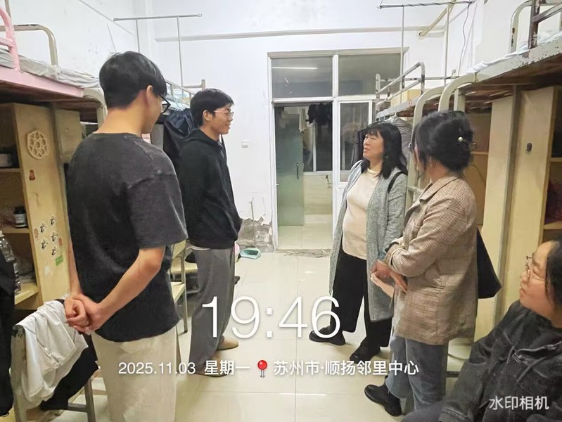图为学院老师走访实习学生寝室