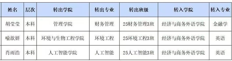 根据《英国正版365官网普通本专科学生转专业实施办法》及《经济与商务外语学院2025级新生转专业工作方案》的相关规定,经学生本人申请、学院转专业工作小组审定,现将2025级新生转专业预录取名单予以公示。