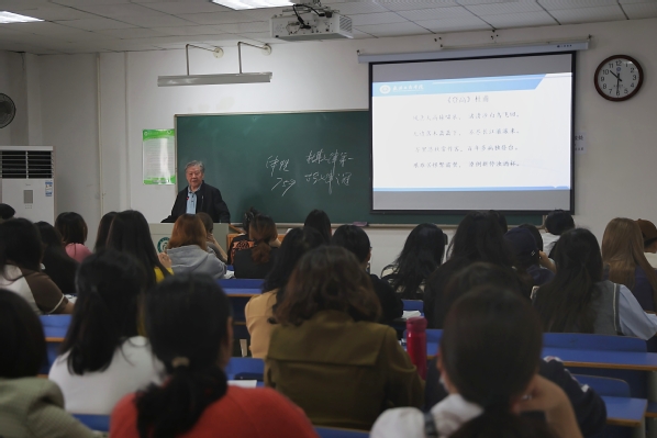 图为张金海院长讲授《古代文学作品选讲》 摄影:闵小雪