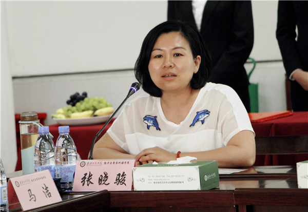 张晓骏副院长介绍了学校以及经外学院的整体状况。她讲到,学校以市场为导向,培养市场需求的人才,服务于武汉,服务于地方。经外学院主要涵盖了五个专业,分别是金融学、国际经济与贸易、英语、文化产业管理、国际商务。另外,还有一个公共英语教学部。“希望到场的各位企业代表能够为我们学院出谋划策,为未来人才培养的目标定位,同时对我们现有的人才培养方案涉及到的课程、实习、实践等环节给予良好的指导。”她说到。