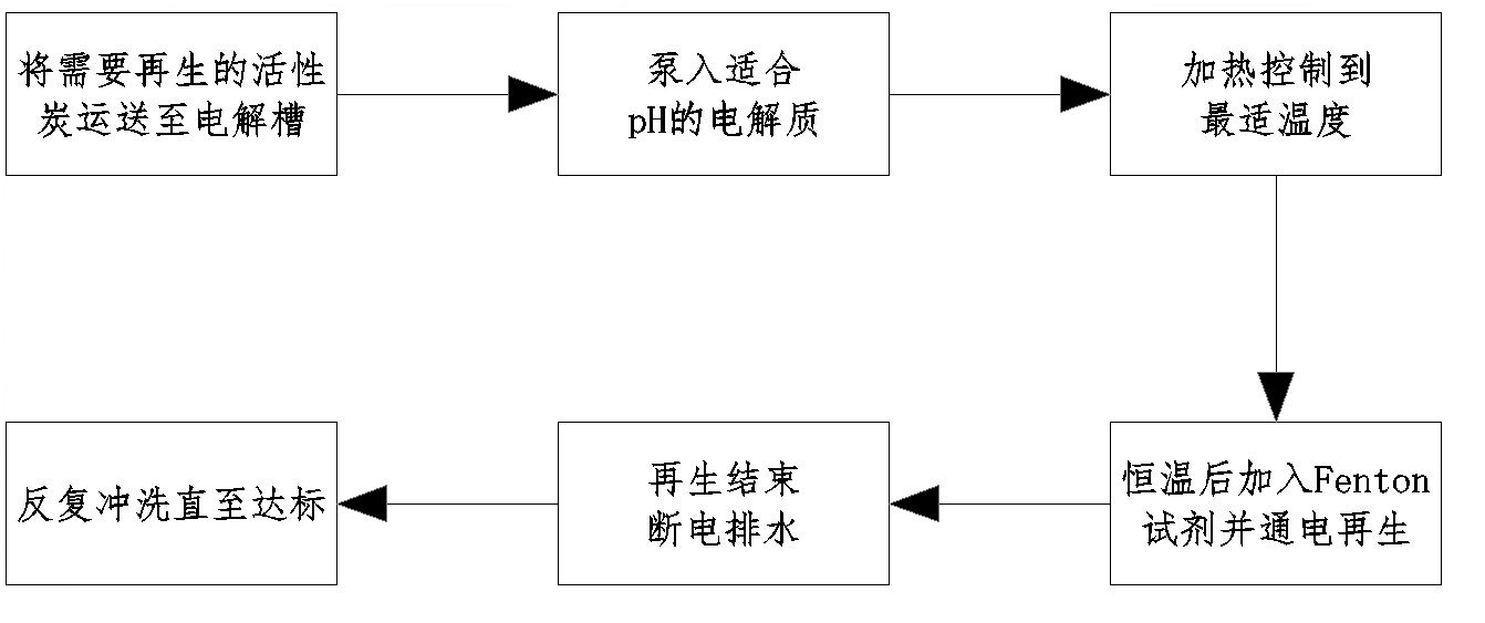 电化学再生:电解池的阳极Pt、石墨作为阴极,阳极的填充活性炭的区域,与阴极石墨棒、恒电流电解条件下。利用直流电场产生的电动力学效应,使污染物发生迁移并富集,从而将吸附物去除以达到对活性炭进行再生。