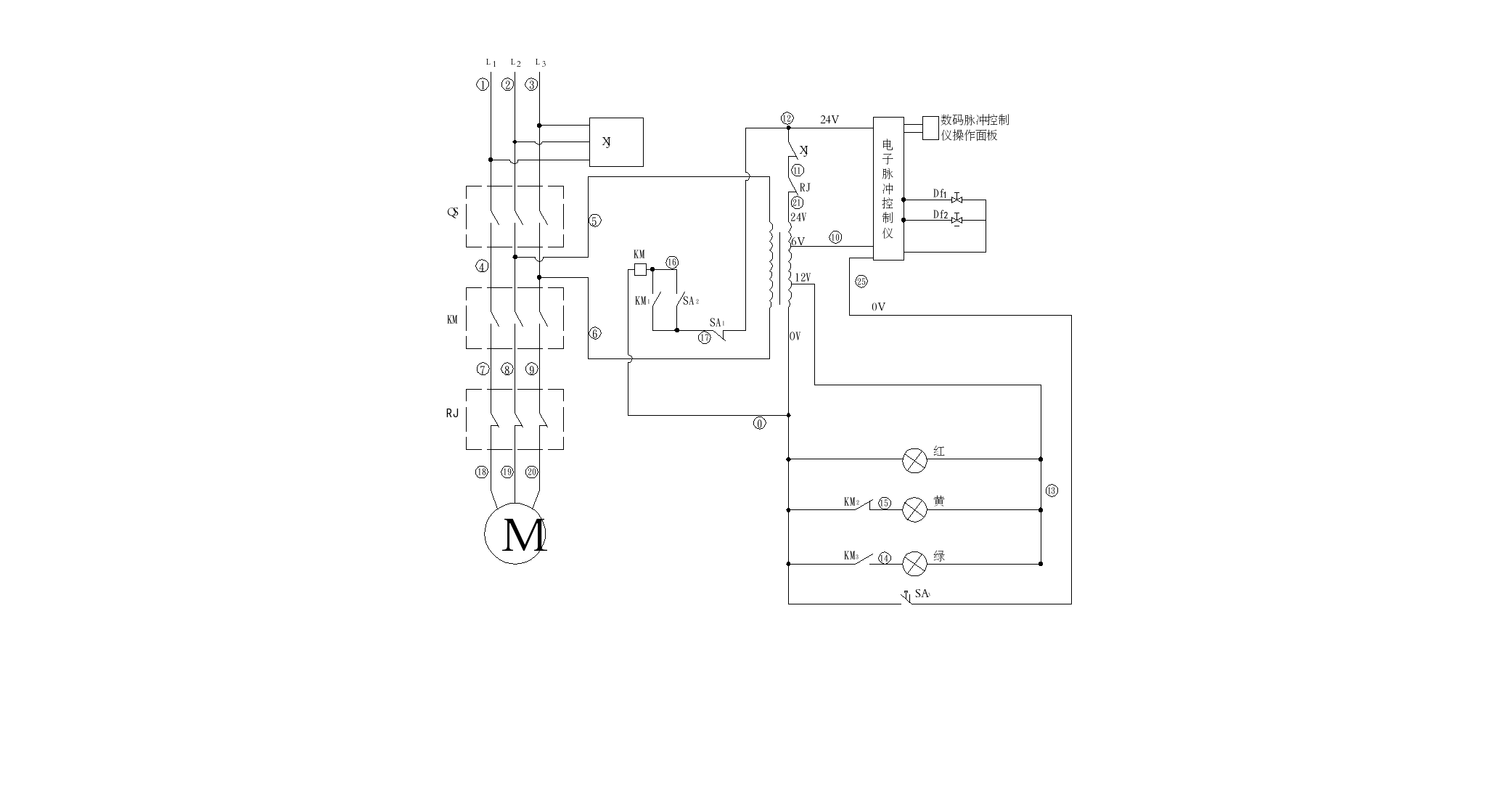 正常工作:数码型喷吹电子板可控制2路喷吹,当“1”下面的LED灯亮起来,表示第一路准备喷吹。当喷吹完第一路后,第二路准备喷吹,同时“2”下面的LED灯亮起来。当喷吹完第2路时,就会重新从第一路开始喷吹。