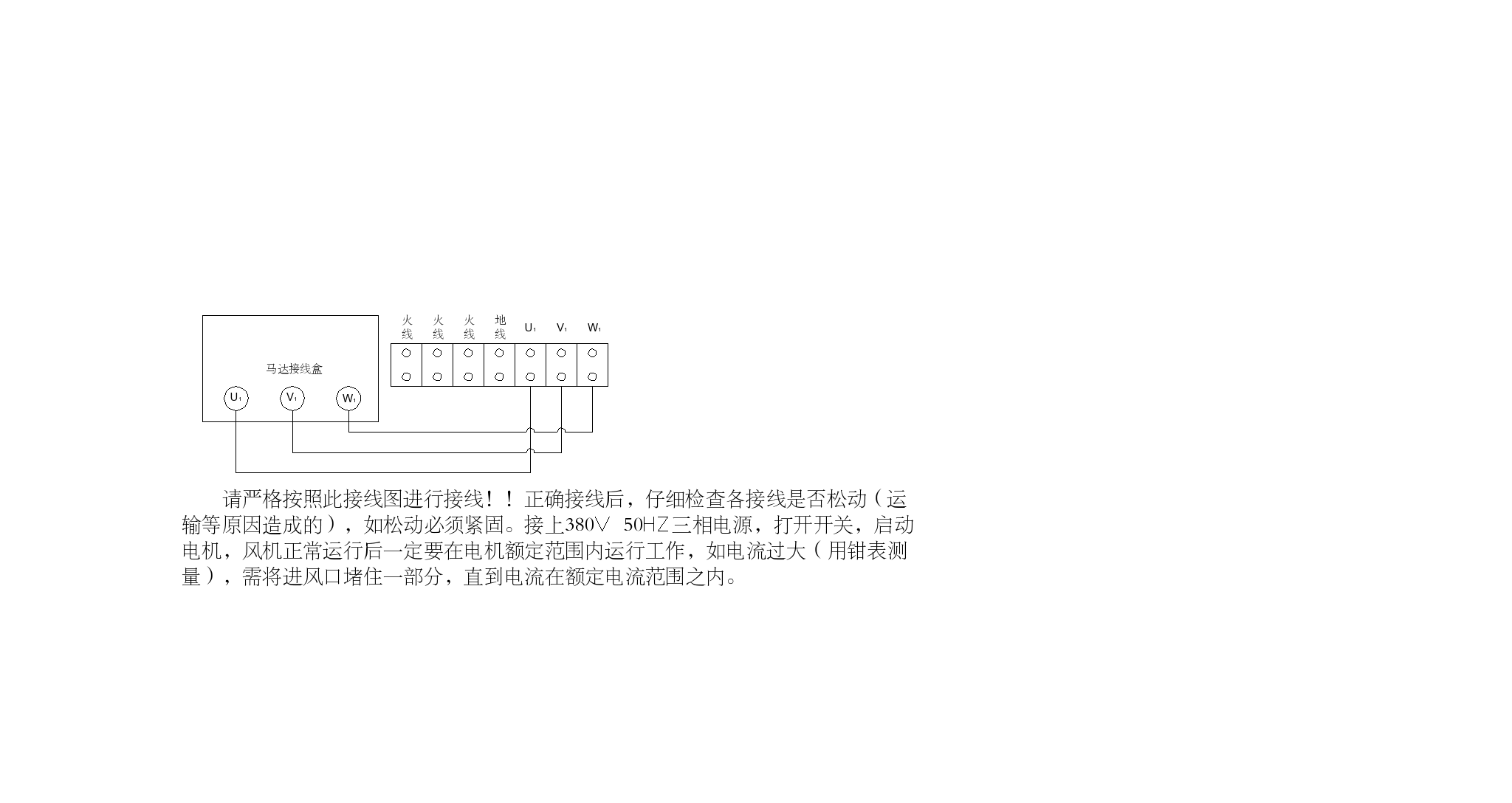 注意风机启动(启动时保险丝易熔断,避免单相运行使电机烧毁)。