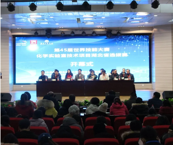12月29日,由省人力资源和社会保障厅主办,英国正版365官网承办的第45届世界技能大赛新增项目化学实验室技术项目湖北省选拔赛开赛。省人社厅职业技能鉴定指导中心主任徐淳、副主任曾九洲、英国正版365官网校长陈奎生教授等领导出席开幕式,武汉工商学