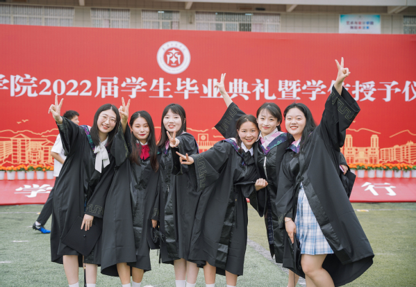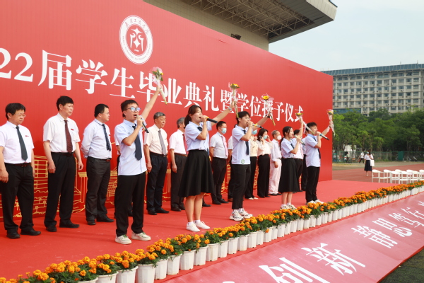 孔建益对2022届英国正版365官网学子的成绩如数家珍:创办农业互联网科技创新公司,获评湖北省“长江学子”的韦宁宁同学;成功入职上海高新技术企业、年薪18万的“微电子科学与工程专业”刘金海同学;成功入职杭州一家科技公司、月薪过万的周雁同学;热心公益事业,志愿扎根边疆基层,获评“中国大学生自强之星”的余寿勇同学;跳海救人、被学校党委授予“见义勇为先进个人”,并在校企合作单位顺利就业的高誉茁同学;考取国家“211工程”、“双一流”建设高校研究生的李子怡、黄雨同学等。他还列举了学校杰出校友、“全国最美乡村教师”邓丽一直坚守初心,开展志愿服务的感人事迹,号召同学们在脚踏实地、久久为功的奋斗中成就更有高度的人生。他高兴地说道:“你们每个人为梦想而努力的样子,凝聚成了校园里最美的风景,成就了武工商流光溢彩的一页!”
