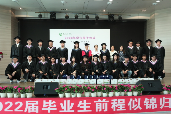 学校学位评定委员会主任孔建益,委员赵北平、亓小林、刘春、王学东、张培林、应时、杨昌柱、张金海、张晓骏、王海文、陈涛、郭一平以及学校党委书记刘生元、副校长桂裕清、党委副书记左宗文、总会计师王程军、校长助理狄奥、应用技术学院院长金学武以及学校相关职能部门领导,各学院领导、教师代表、毕业班辅导员、毕业生代表、毕业生家长代表参加了典礼。典礼由张俊副校长主持。