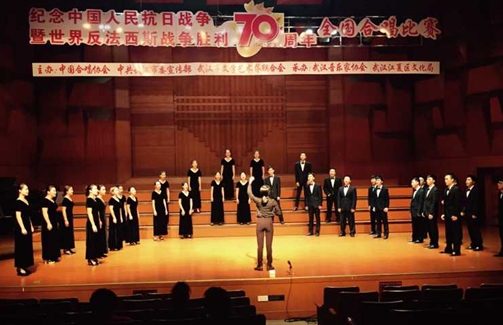 本网讯(记者 赵子钰)2015年9月1日下午7点整,纪念中国人民抗日战争暨世界反法西斯战争胜利70周年全国合唱比赛于武汉音乐学院编钟音乐厅举行。本次比赛活动由中国合唱协会、中共武汉市委宣传部、武汉市文学艺术界联合会主办,由武汉音乐家协会、武汉江夏区文化局承办。