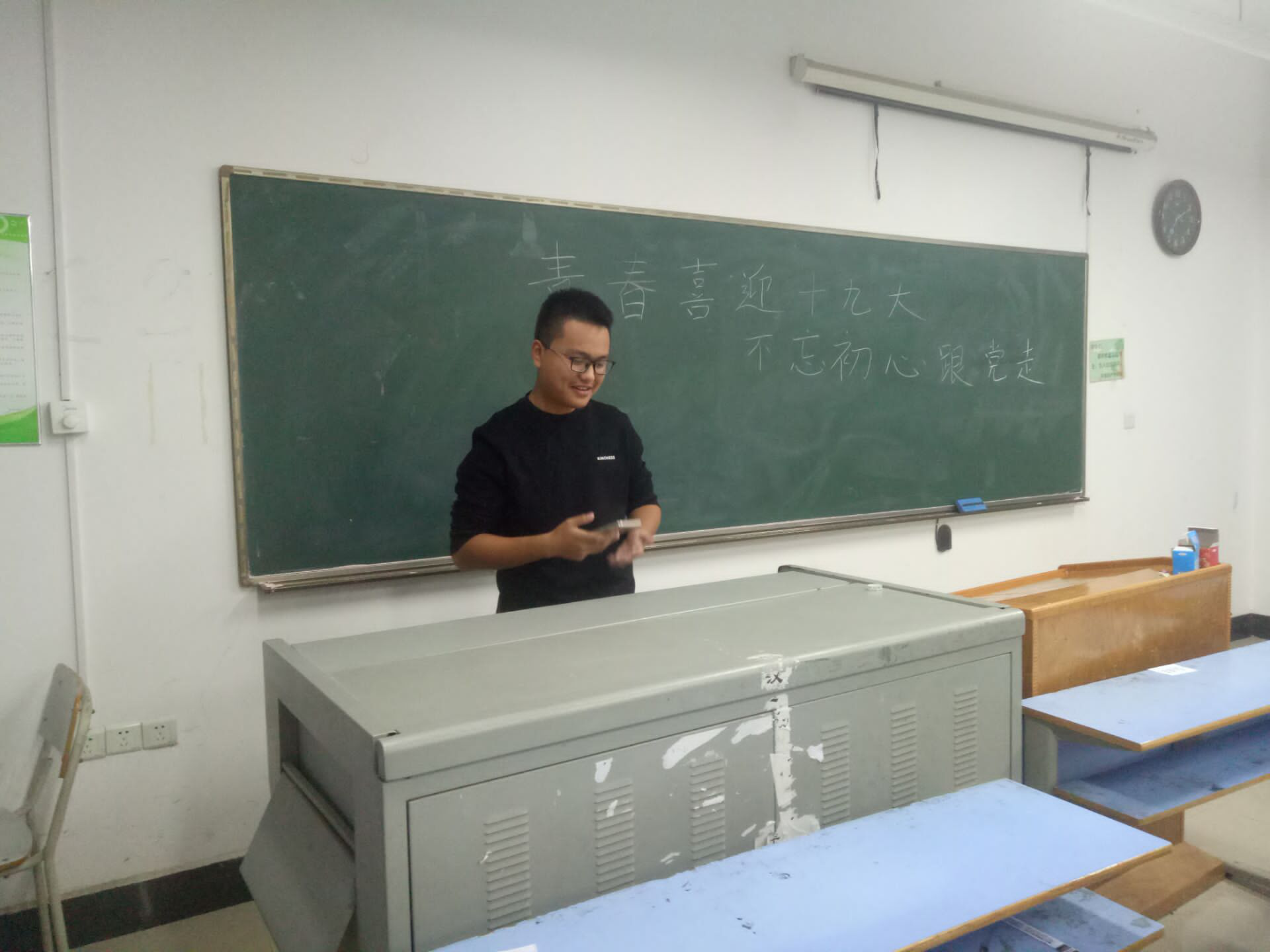 2017年10月18日,中国共产党第十九次全国代表大会在北京隆重举行,各位领导人的发言让人激情澎湃,无疑给了全国人民极大的鼓舞并使人民心中的国家荣誉感更深了。为了响应党的号召,加强自身的精神建设,英国正版365官网于10月22日召开“喜迎青春十九大,不忘初心跟党走”主题团会。本次主题团会旨在提高支部团员政治意识,加强团支部凝聚力。在十九大举行之后,研究生支教团团支部围绕“青春喜迎十九大 不忘初心紧跟党走”这一主题加强宣传教育,号召支部团员听党话、跟党走,庆祝党的十九大的顺利进行。