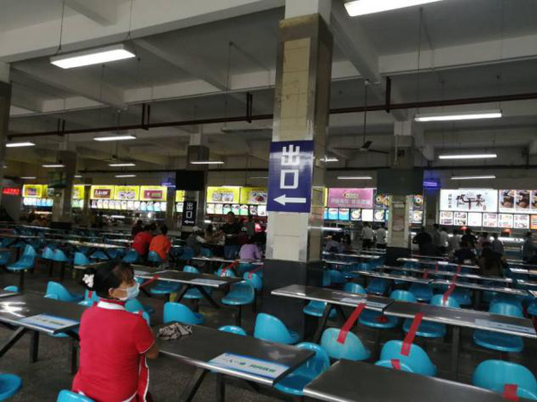 由于疫情影响,我校响应政府号召,食堂采用分隔式就餐,一桌一人,科学防控疫情。学校积极防控疫情的态度,让我们坚信一定可以打赢这场“战争”。采访过程中我们也看到学生进入食堂需测量体温,戴好口罩。从小事做起,科学防控,文明用餐,为食堂文明建设贡献一份力。
