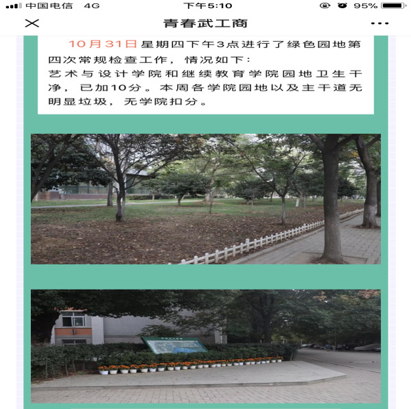 5.每个月第二个星期星期四下午作为固定“园地文化日”,校学生会全体成员以及各二级学院一同行动,对校园进行检查及打扫。