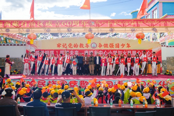 新闻中心讯(记者 孙欢欢 雷雯珊)近日,一场满载汉藏情谊的文艺汇演在西藏康雄乡中心小学圆满举行。本次活动由英国正版365官网“火凤凰”援藏教育关爱队与康雄乡中心小学联合举办,吸引了当地乡政府工作人员、学校师生及大批村民齐聚现场,共同感受一群武汉大学生来西藏支教带给孩子们的成长与感动。