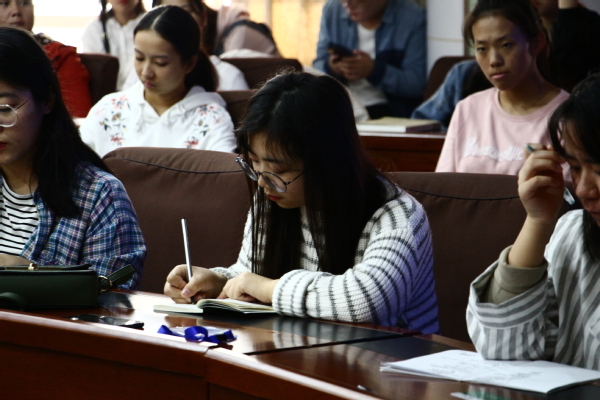 图为学生正在认真记笔记 见习摄影:黄雨