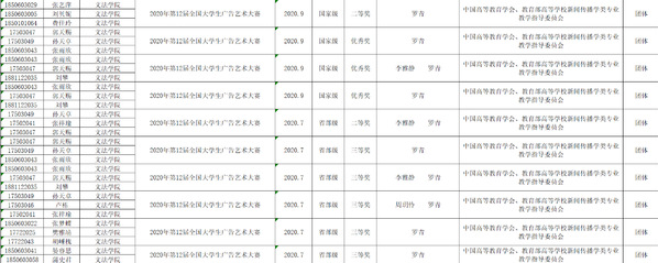 2020年,在第十二届全国大学生广告艺术大赛上,我院学生在指导老师带领下喜获佳绩,共获得国家级二等奖1个,国家级优秀奖3个,省级二等奖1个,省级三等奖5个,省级优秀奖9个。