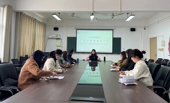 12月4日下午,文法学院新闻系举办“一流本科课程”建设研讨活动。全体新闻系教师聚焦“成果导向、思政育人”的课程建设理念,结合《数据新闻内容生产与制作》课程展开深入广泛的交流学习。此次研讨活动由新闻系主任亢海玲副教授主持。