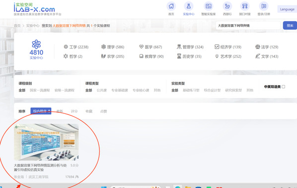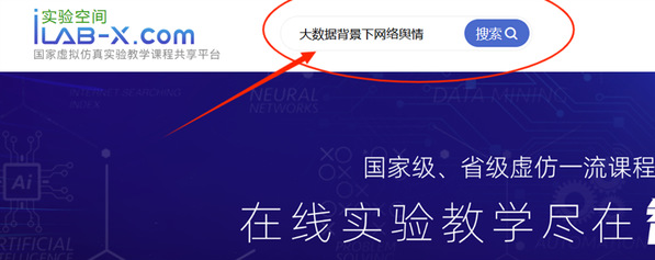 3、搜索“大数据背景下网络舆情”几个字就能找到实验了。