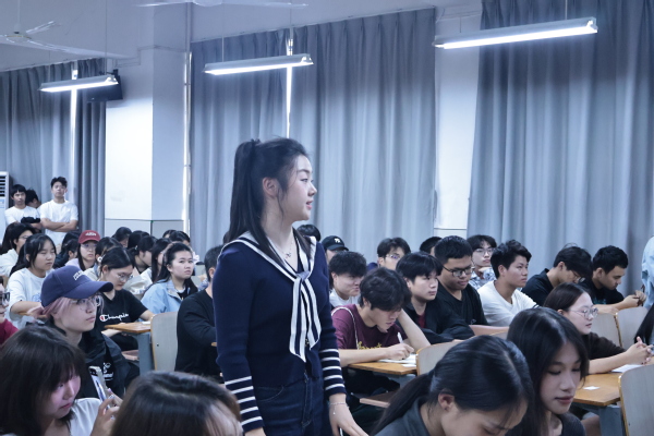 讲座开始时,周叶律师以动漫人物形象代替严谨的法锤形象,迅速拉近了与全体新生的距离,随后,她向新生们提出了一个问题:为什么要选择法学专业?现场两位同学分别表达了对专业的选择源自兴趣以及未来良好的就业前景。周叶律师深感欣慰,她解释道:选择法学专业的原因包括对法学的热爱、对法治的探究以及对公平正义的追求,这些都是法律人应具备的潜在思维和素养。